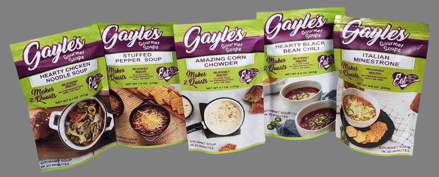 Gayle offers delicious, tasty and healthy dry soup mixes shipped to your door. Gayle's soup has a great taste because we use freeze dried veggies dehydrated beans - and it's ready in 20 minutes.