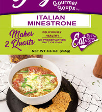 A package of dry soup that makes 2 quarts of Italian minestrone soup  Just add 6 cups of low sodium chicken or vegetable broth, 1 cup of shredded cabbage and 1 small can of petite diced tomatoes and 1cup of water.  Cook and simmer for 35 minutes and you have a meal.  Directions & recipe variation on the package.  Salt to taste.